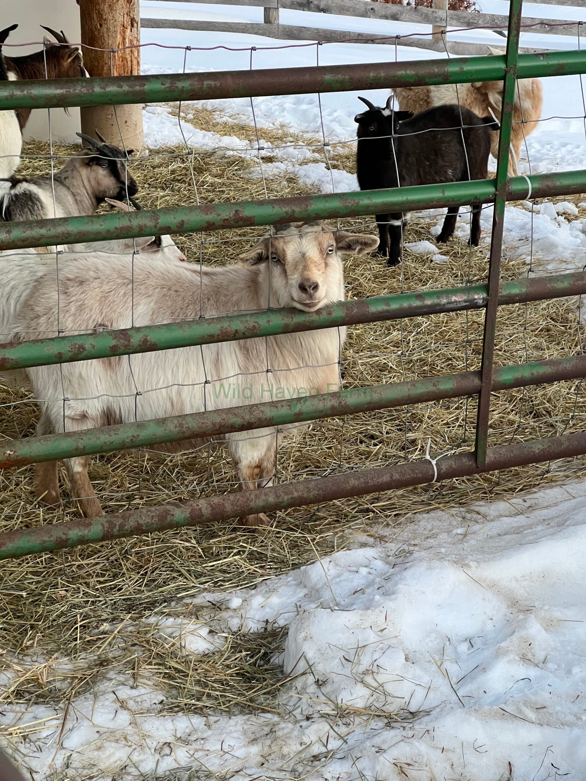 Timberside Farm Echo was born in 2018 and is registered with the Myotonic Goat Registry. Echo is a strong leader and a co-regent in the herd. She is curious and will try to get into everything. Echo has been seen in a full down state but she is very low on the myotonia scale and only rarely locks up her hind legs.
